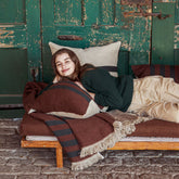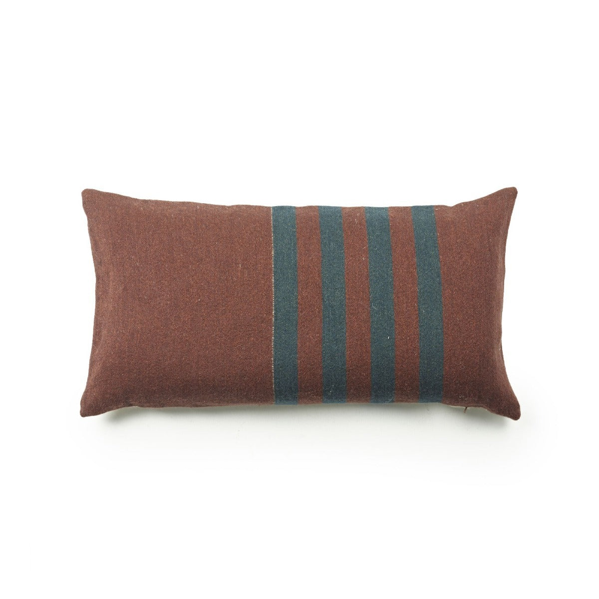 De Juniper kussenhoes combineert warmte en veelzijdigheid dankzij zijn merlotbruine ondergrond en contrasterende achterkant met sparrengroene strepen. Hierdoor kun je moeiteloos van look wisselen en je interieur naar wens stylen. Gemaakt van een hoogwaardige mix van linnen (70%) en wol (30%), biedt deze hoes een rijke textuur en een behaaglijke, natuurlijke uitstraling.