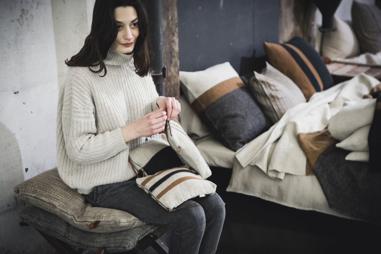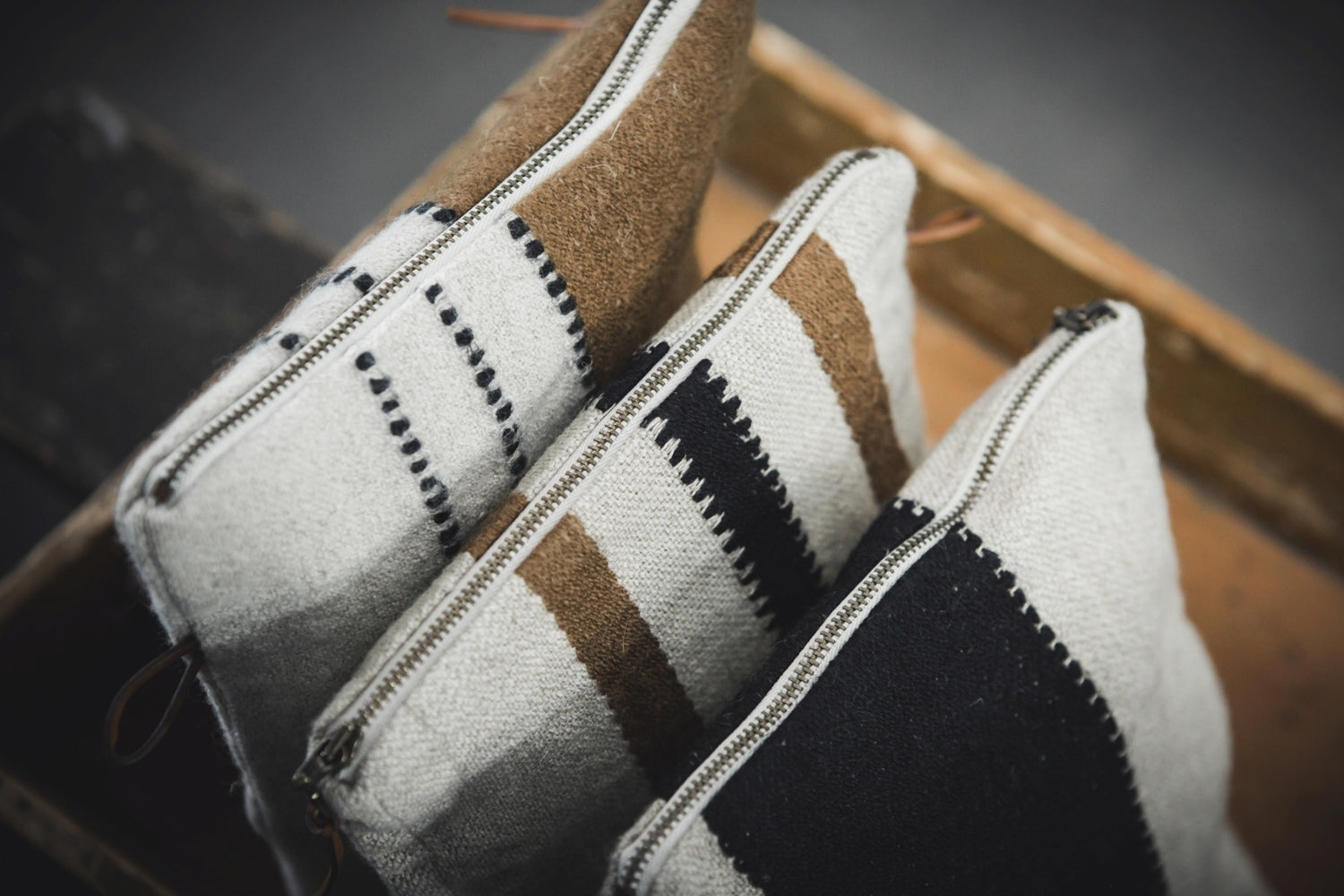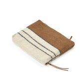 Deze elegante etui combineert de natuurlijke schoonheid van linnen en wol met een robuuste, gewassen afwerking. De strepen in beeswax brown en zwart komen prachtig tot hun recht op een gebroken witte basis, wat zorgt voor een stijlvolle en warme uitstraling. Dankzij de verrassend lichte stof en rijke textuur is deze etui zowel praktisch als een lust voor het oog.
