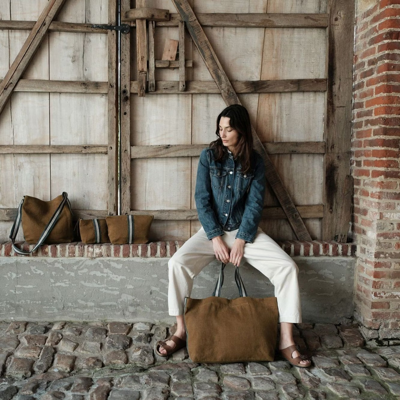 Breng een stukje natuurlijke warmte in je dag met de Miles Schoudertas. Deze tas, gekenmerkt door een diepe, warme eikenkleur, is meer dan een accessoire; het is een statement van subtiele luxe. De robuuste canvasstructuur van 100% linnen voelt verrassend zacht aan dankzij de gewassen afwerking, terwijl de verfijnde grijsblauwe en gebroken witte strepen de tas een speelse en tijdloze touch geven. De drukknoopsluiting zorgt voor een praktisch en veilig gebruik, passend bij een actieve, moderne levensstijl.