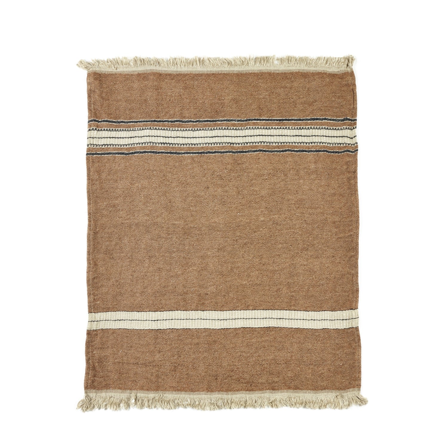 Het Multicloth Small Black Stripe combineert minimalistische elegantie met ultieme veelzijdigheid. De subtiele creme en zwarte strepen op de bruine basis geven het kleed een moderne, tijdloze uitstraling die moeiteloos past in elk interieur. Gemaakt van 100% linnen met een gewassen afwerking, voelt het heerlijk zacht aan en heeft het een casual, luxe look.